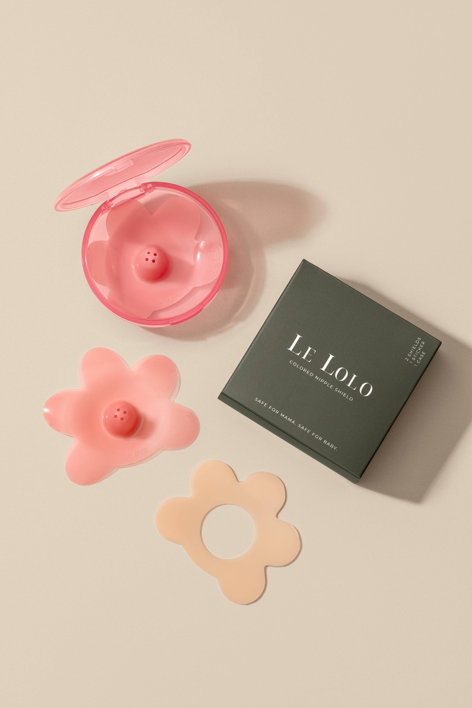 Each package includes (2) nipple shields, (1) nipple shield sticker, and (1) case
