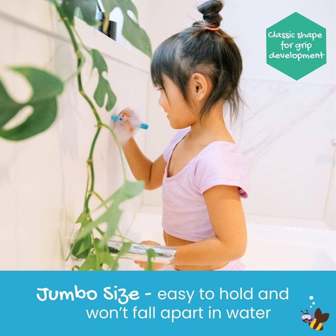 ✋ Easy to Grip – Jumbo-sized (3.9” x 0.49”), these crayons are easy for small, wet hands to hold and last longer without snapping.