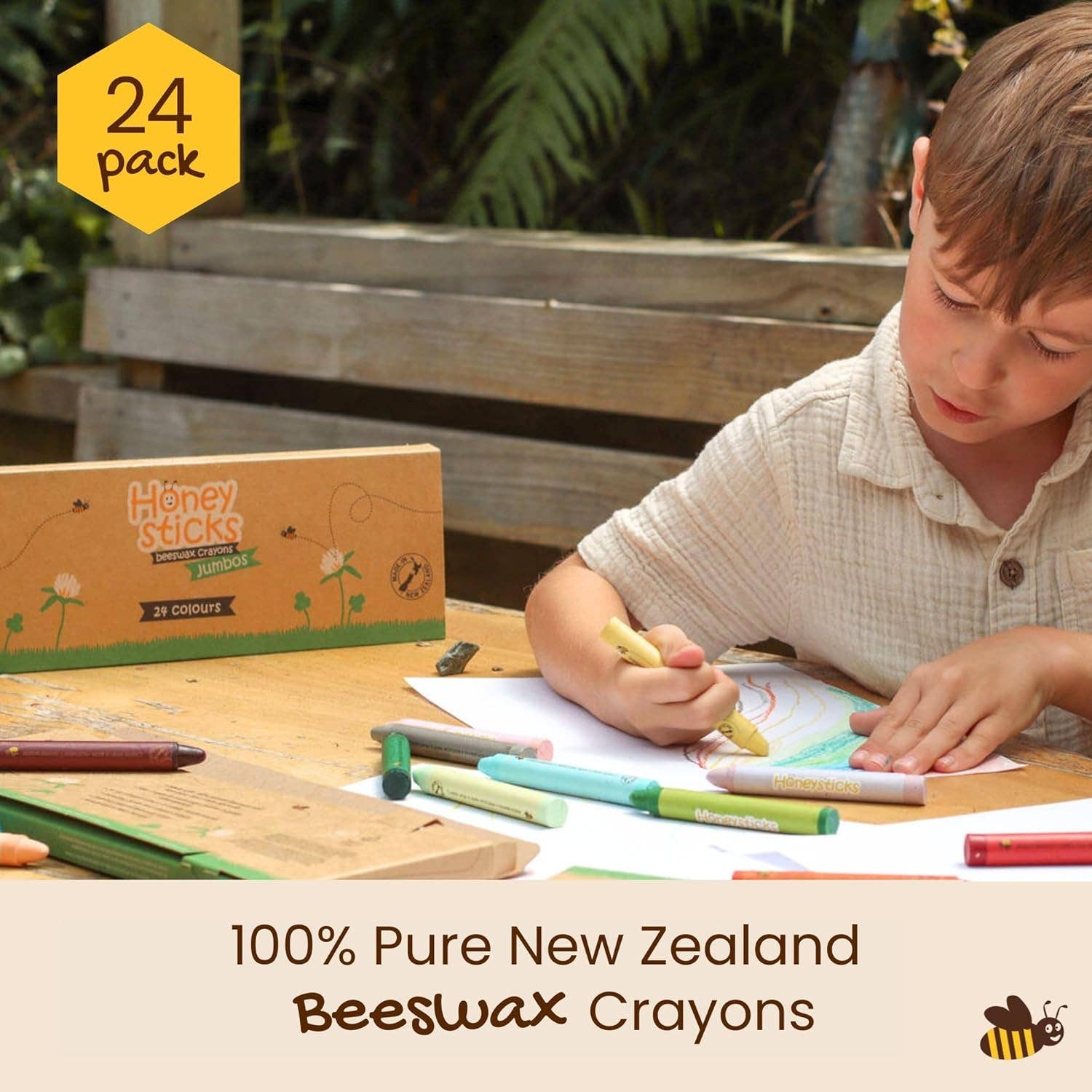 Unlock your child's creativity with Honeysticks' premium quality jumbo crayons, made with natural beeswax and food-grade pigments for safe, non-toxic fun.