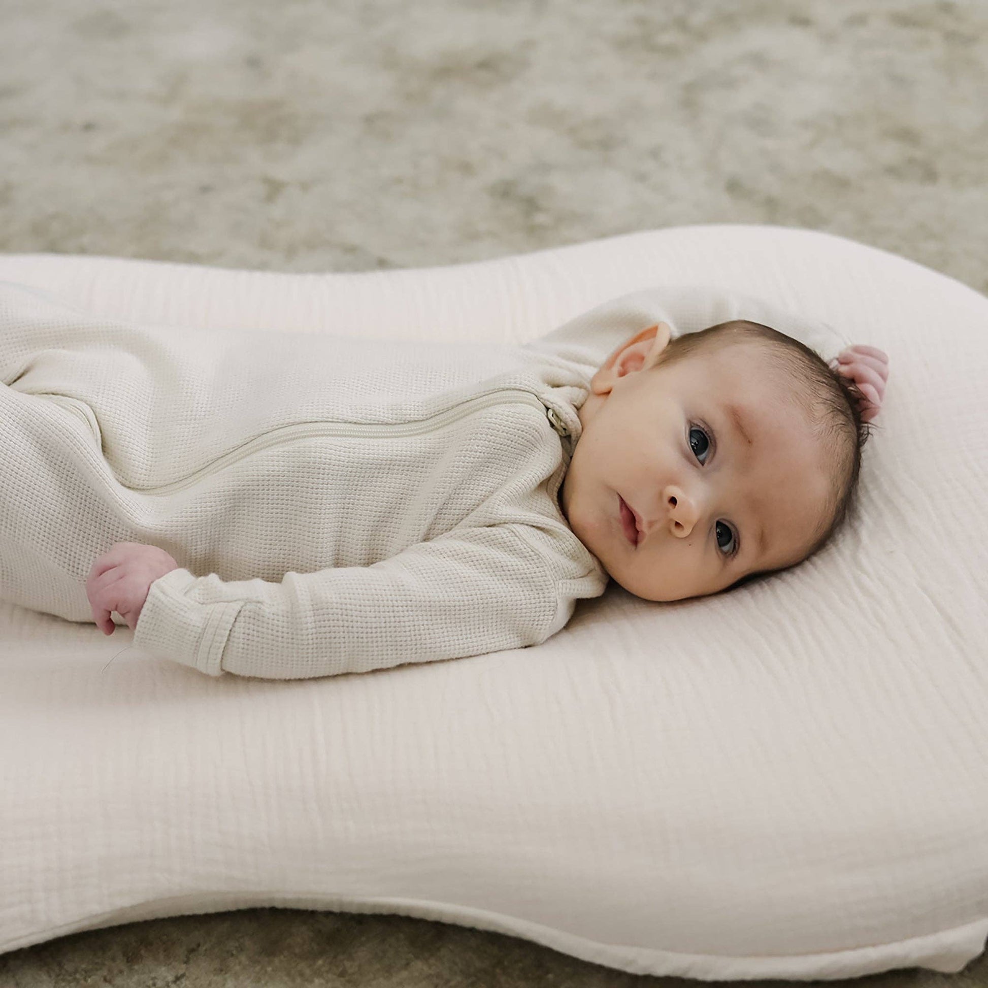 The Snuggle Me®Lounger Curve Muslin Cover is made with soft 100% organic cotton muslin fabric, soft on babies skin. Our Lounger Curve Covers protect your lounger from little leaks and spills, and are machine washable allowing you to reduce washing of the lounger itself.