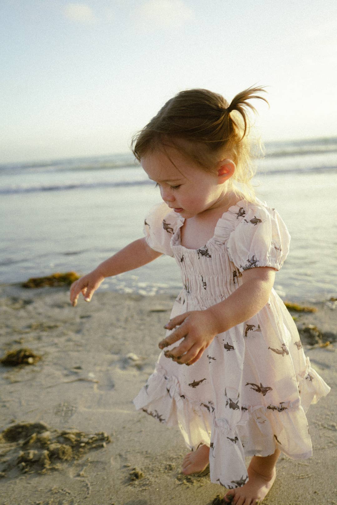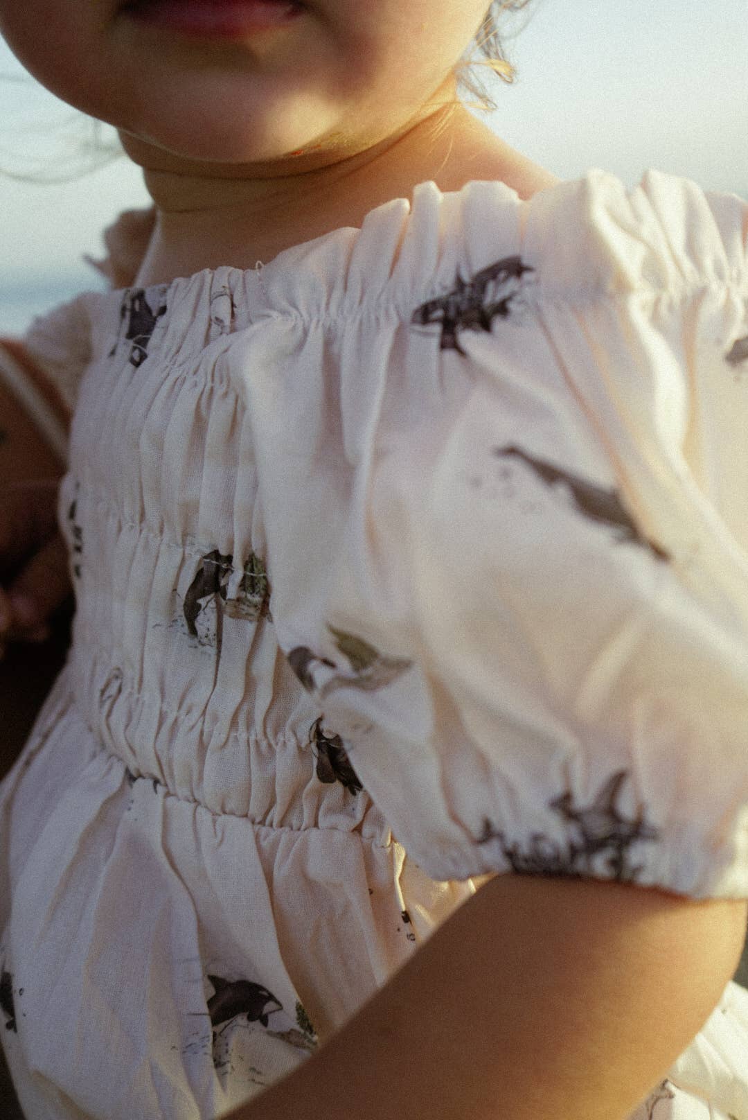 Make a splash with our adorable orca dress! Inspired by Kai the Orca and his playful pod from the Pacific Northwest, this dress brings the spirit of the sea to your little one's wardrobe. Whether it's a beach day, a lunch outing or simply playing in the yard, this dress is a summer staple!