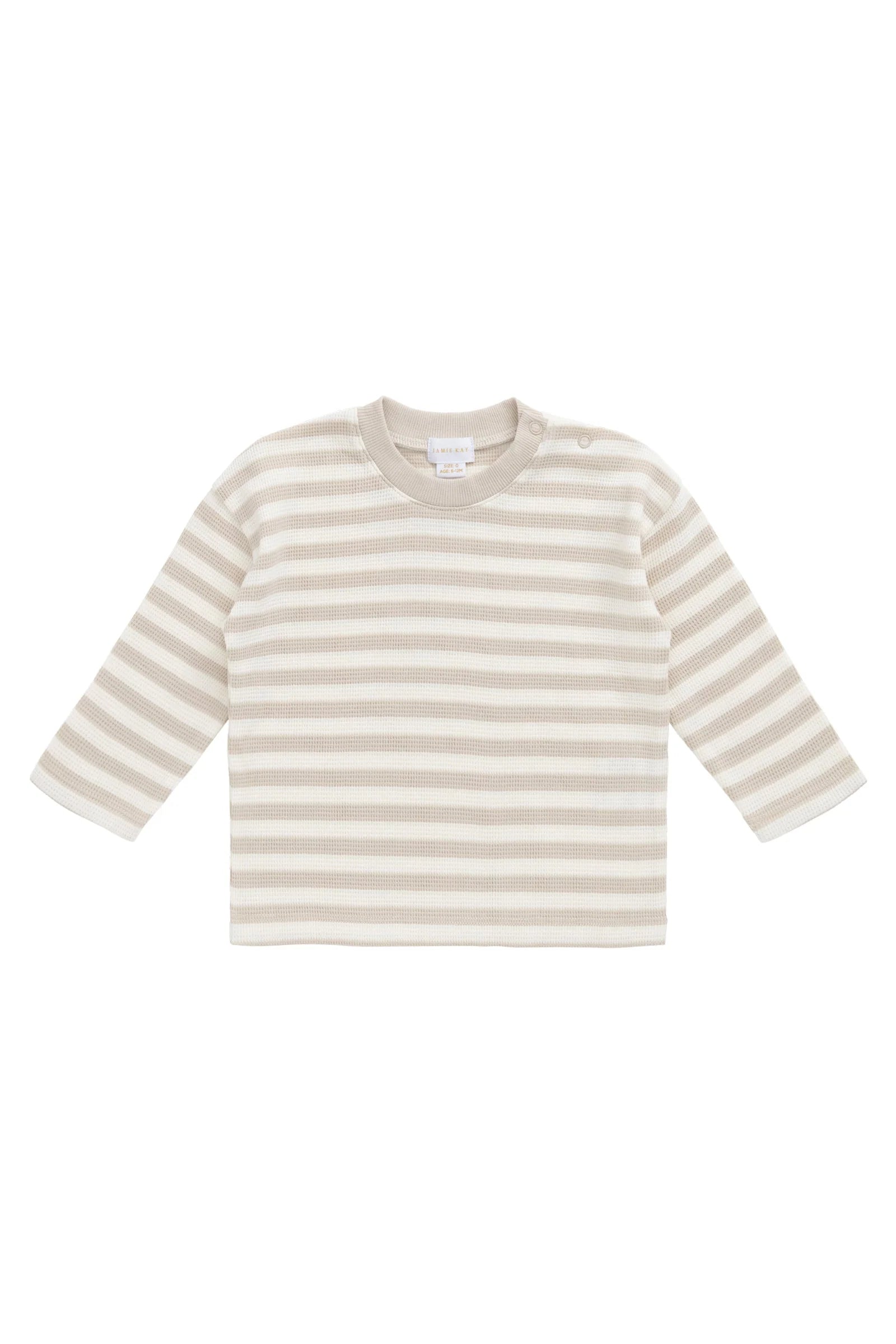 Organic Cotton Waffle Leith Long Sleeve Top - Staple Stripe Oat/Cloud