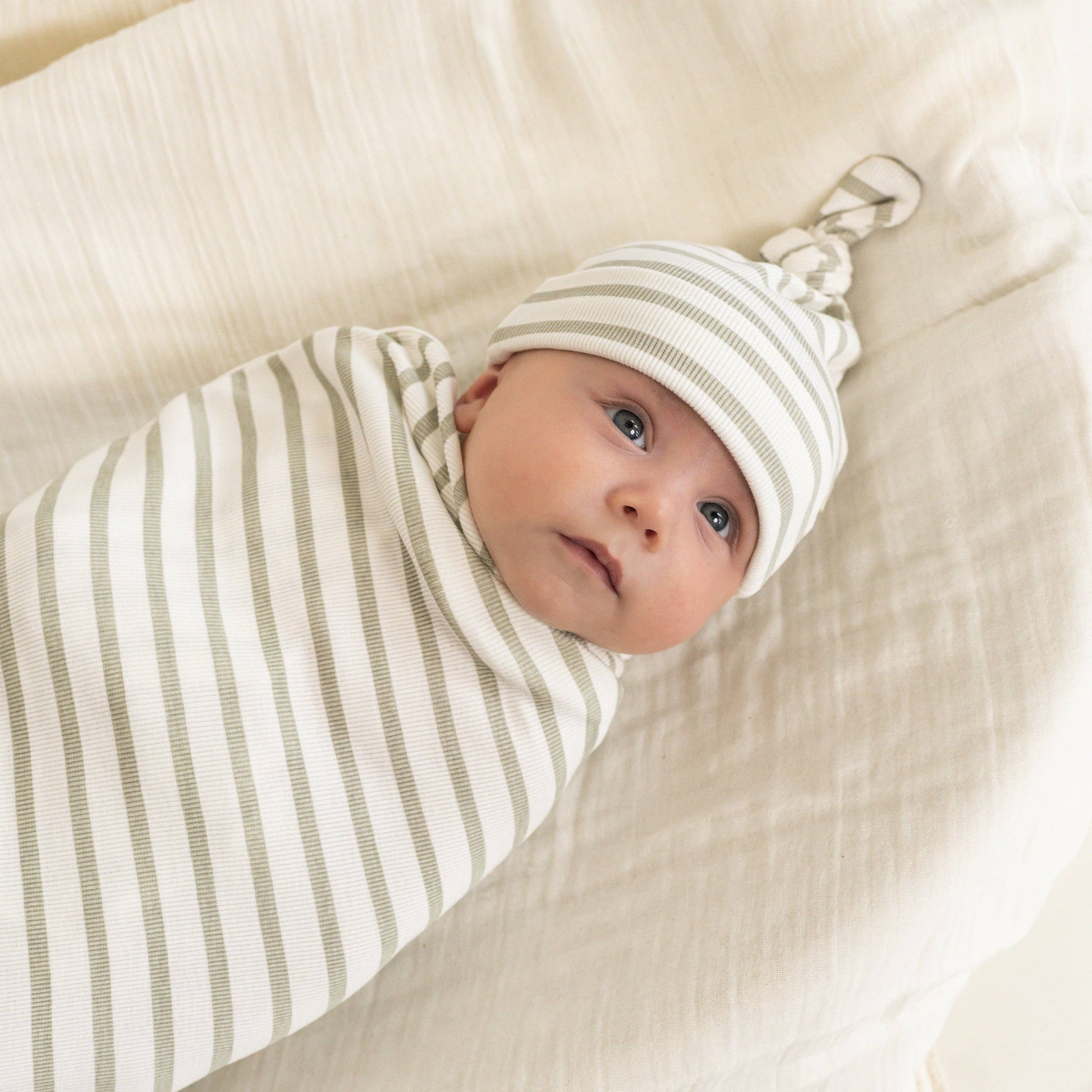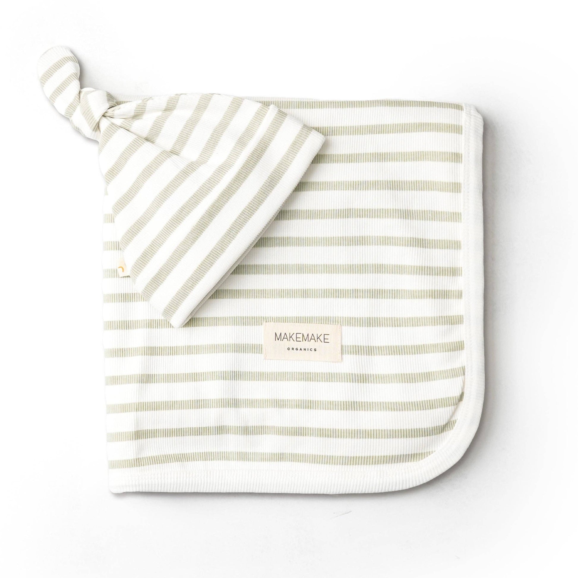 Organic Swaddle Blanket & Hat Set - Sage Stripes