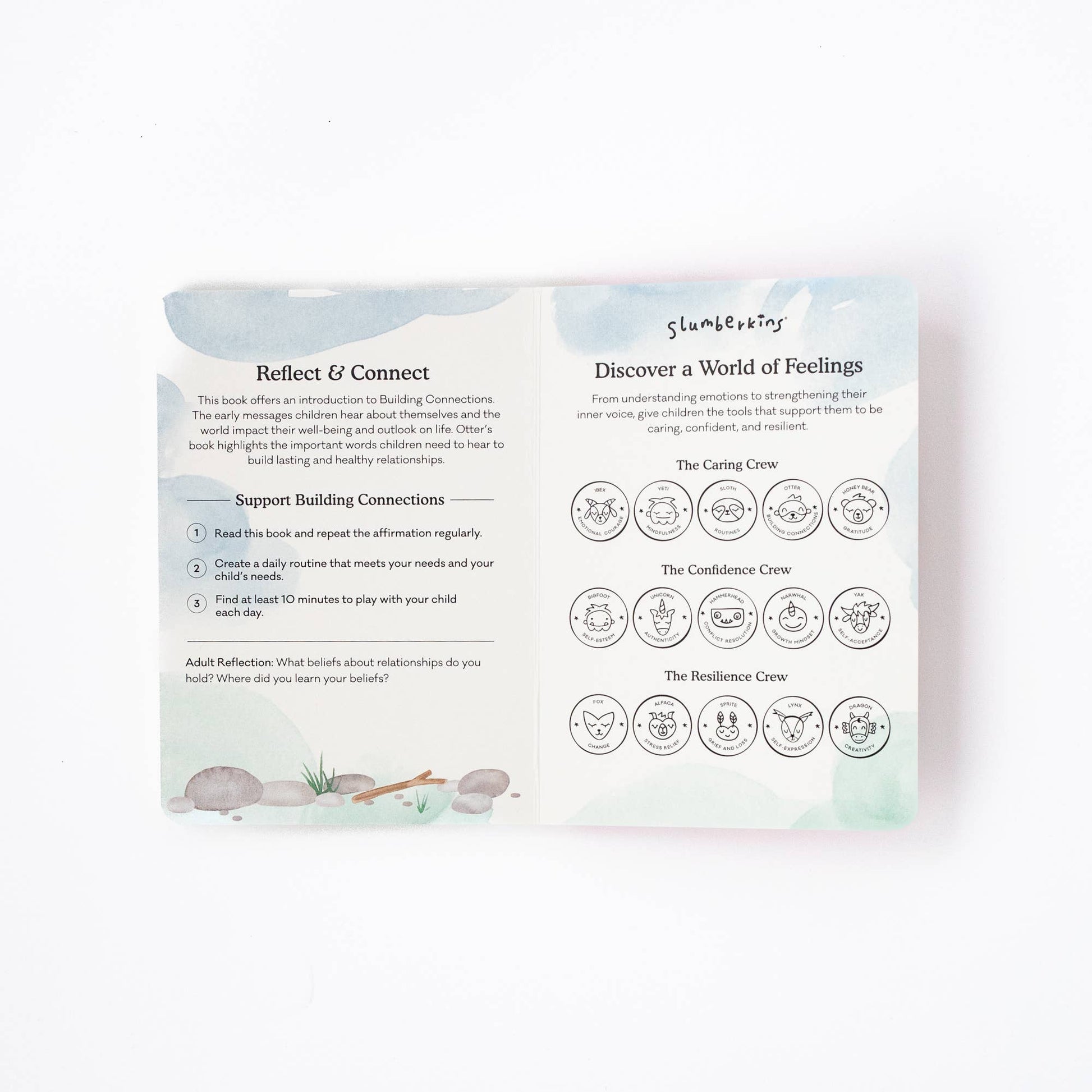 Otter encourages kids to explore their relationships within their families and communities, fostering a deep sense of belonging. This plush toy set uses foundational connection messages and examples of how to apply them.
