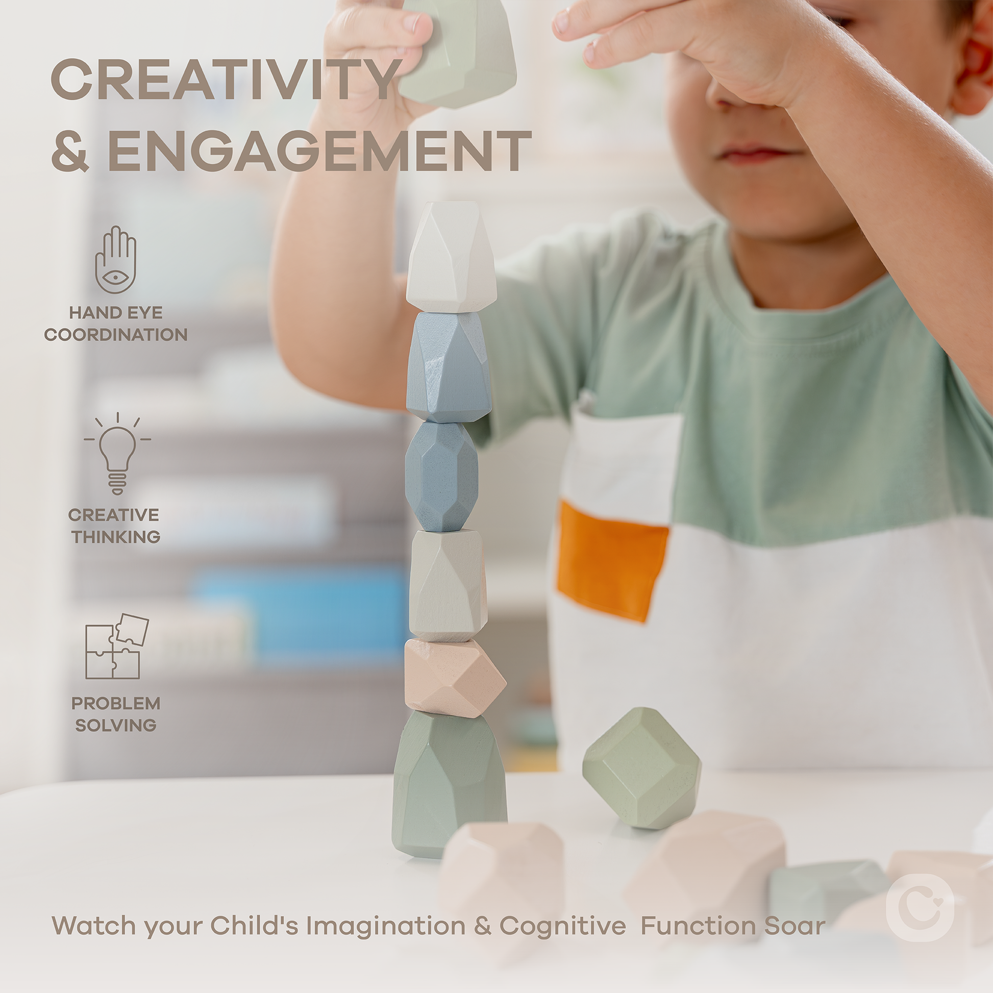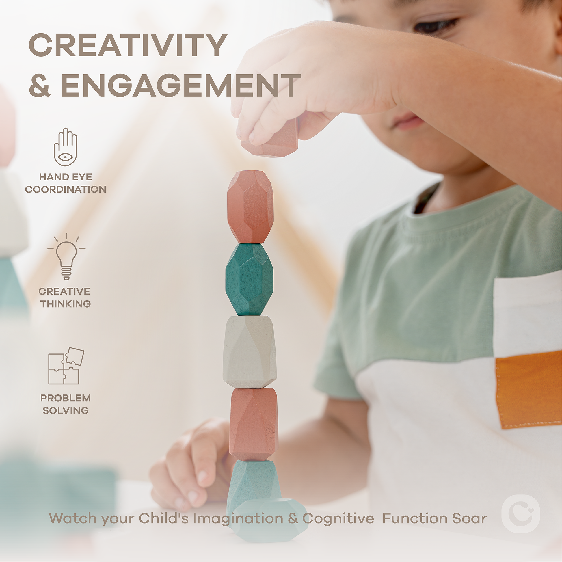 ⚫ Peace of Mind: Our wooden stacking blocks are crafted from sustainable pine wood and non-toxic water-based paint for your child's safety, ensuring they can enjoy hours of play w/out exposure to harmful chemicals. Our kids toys are made from durable, eco-friendly materials that are built to last, making them the perfect choice for conscious parents.