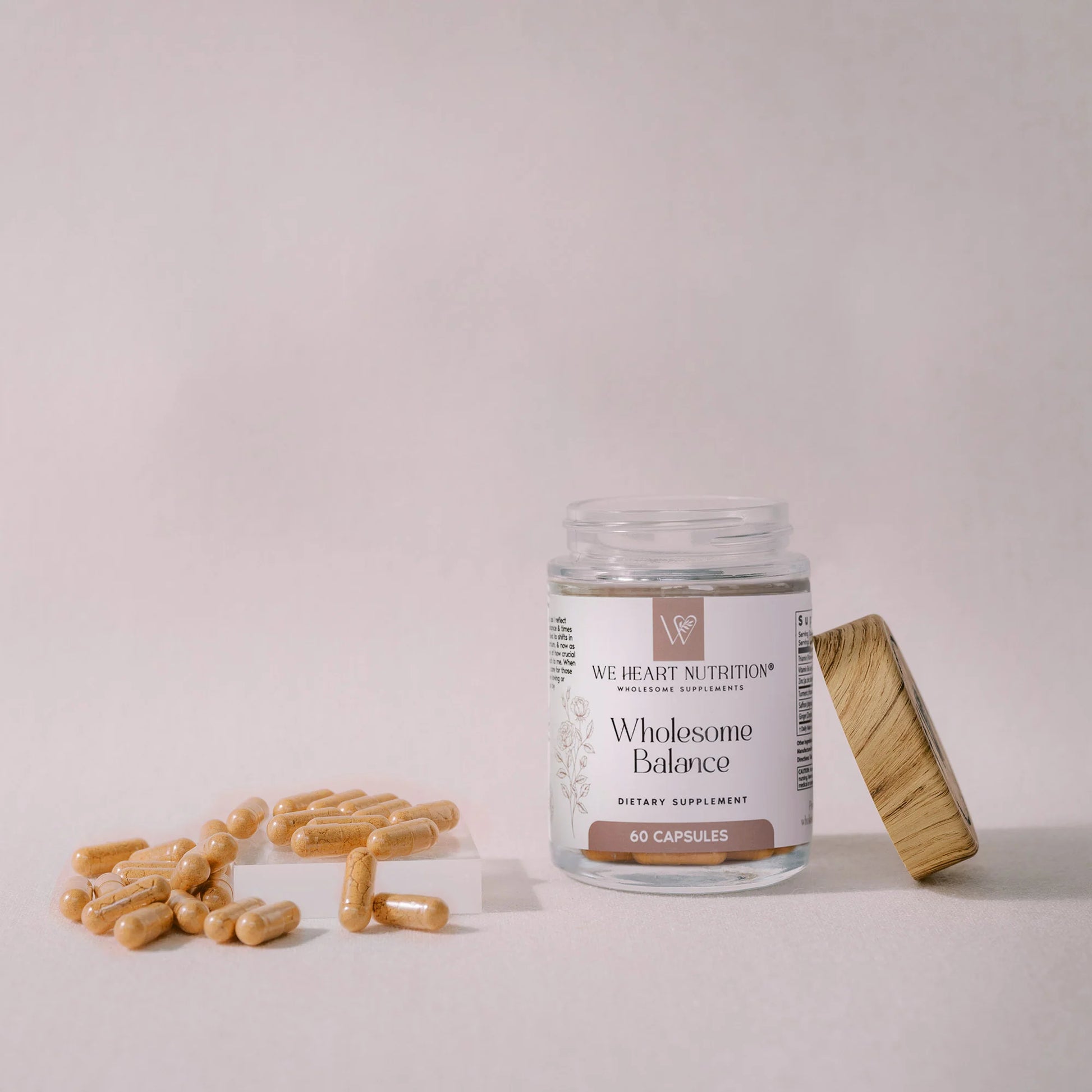 Feel grounded, energized, and supported with Wholesome Balance by WeHeart Nutrition- a thoughtfully formulated daily supplement designed to help woman restore balance, regulate hormones, and support mood, energy, and digestion.