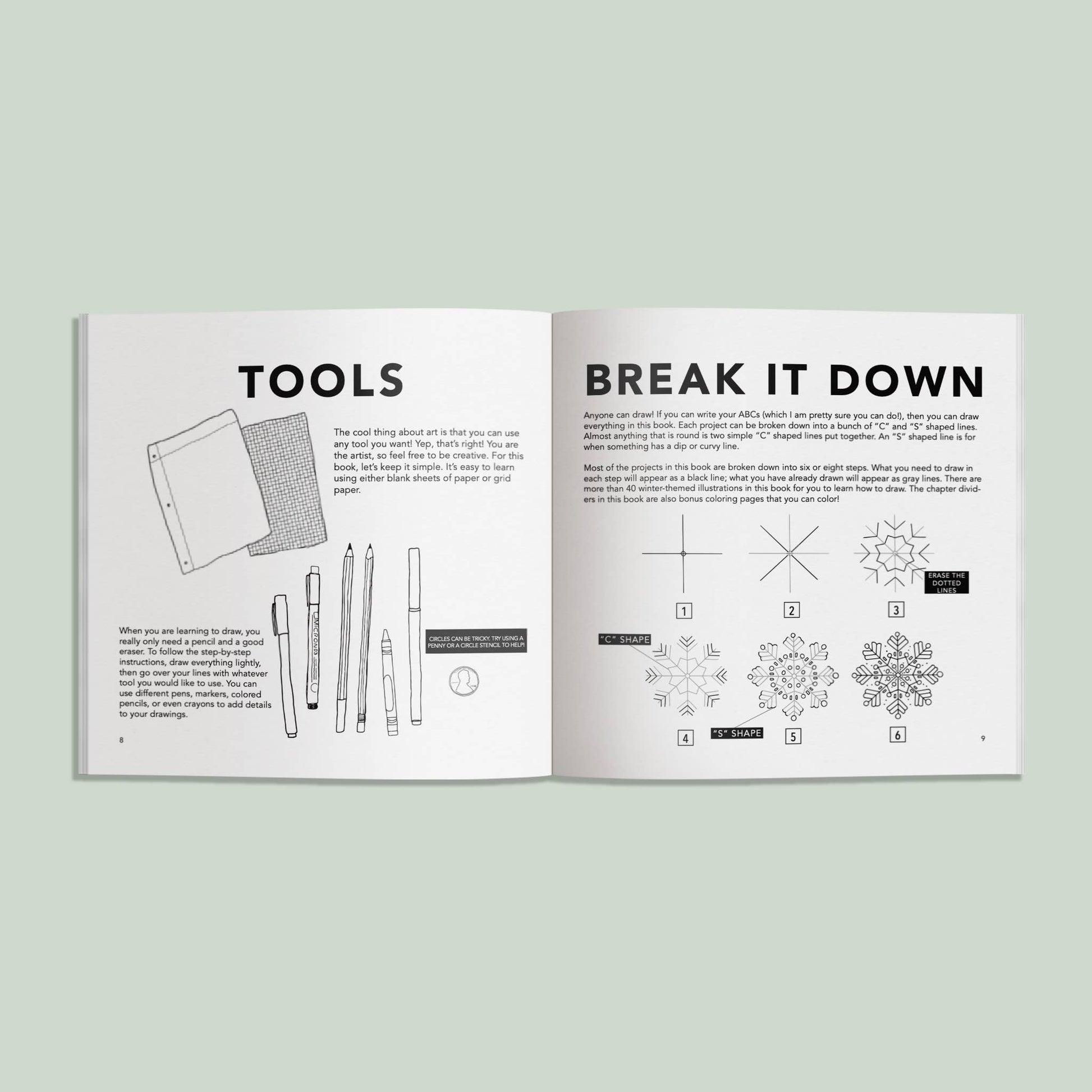 • 40+ winter-themed drawing projects with step-by-step instructions